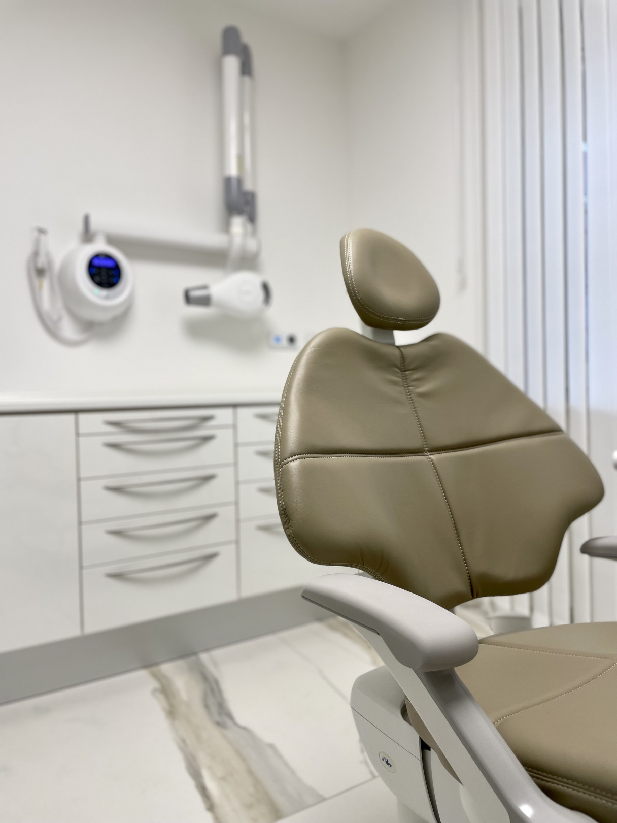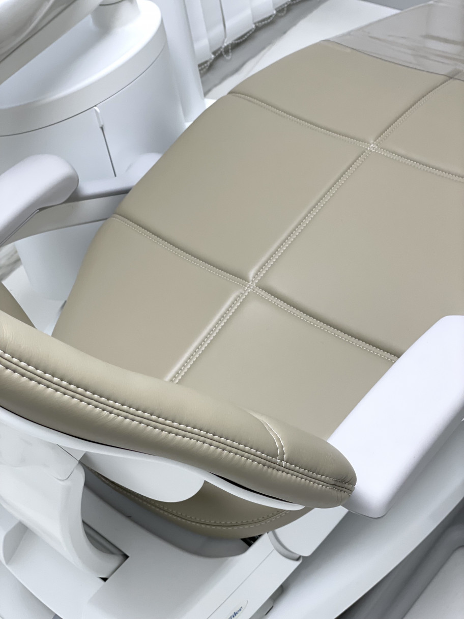 Die A-dec 500 Behandlungseinheit besticht mit einer Loungepolsterung und modernster Instrumenten-Ausstattung